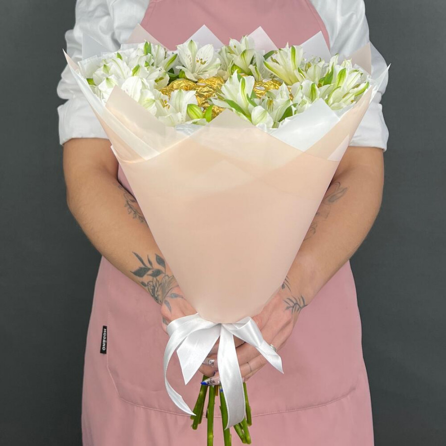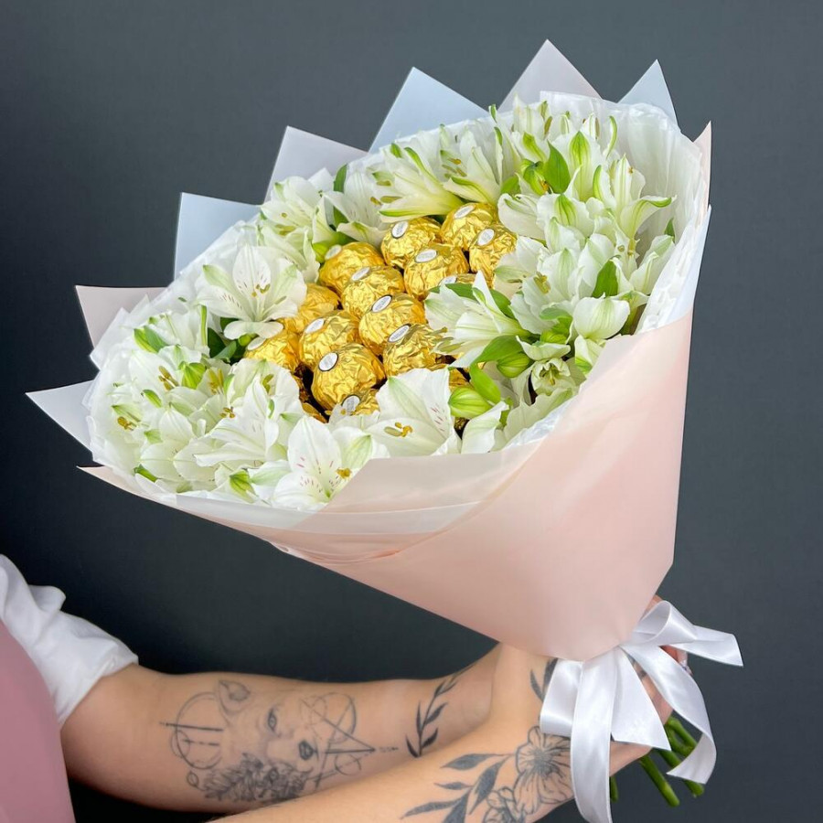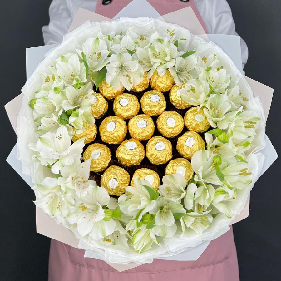 Букет из конфет Ferrero Rocher и и альстромерии в Калуге