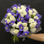 Букет из синих ириcов и белой кустовой розы в Калуге