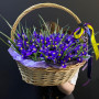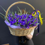 Лента атласная - 2 шт. Корзина плетеная - 1 шт. Открыточка с вашими пожеланиями - 1 шт. Оазис флористический - 1 шт. Ирис фиолетовый - 101 шт. инструкция по уходу за цветами - 1 шт. хорошее настроение - 100 шт.